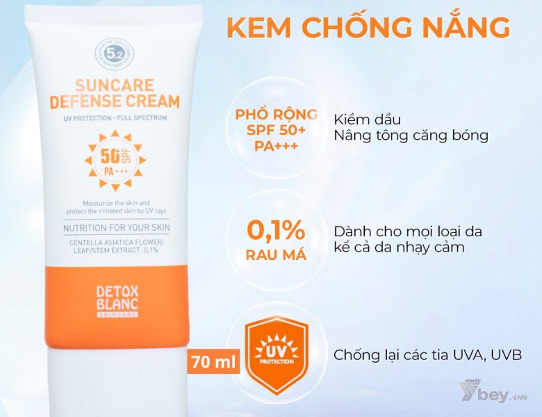 Kem chống nắng phổ rộng SPF 50+ PA +++ Detox Blanc Suncare Defense Cream 30ml