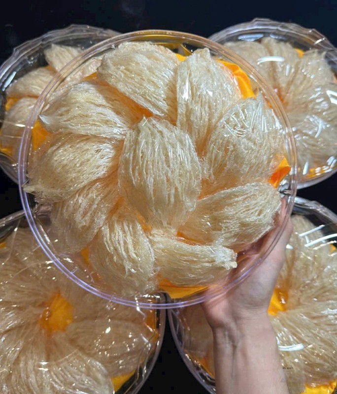 - Tổ yến sau khi qua công đoạn làm sạch, được đắp lại thành tổ một cách kỹ càng, tỉ mỉ, bề mặt bên trên là các sợi yến dài, đều, đẹp, phần bụng là vụn yến.