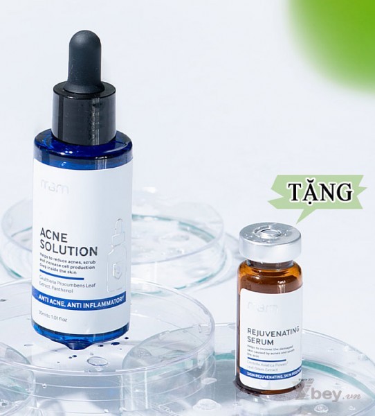 Tinh chất điều trị cho da mụn Acne Solution Serum M3M giúp loại bỏ hoàn toàn các loại mụn mủ, mụn bọc, mụn viêm... loại bỏ cồi mụn ,ngăn ngừa mụn lan rộng và hình thành nhân mới, kháng viêm, diệt khuẩn, tiêu cồi mụn, se khít lỗ chân lông, giúp da sáng mịn, mềm mại, xóa bỏ các vết thâm, vết sạm do mụn để lại, làm liền các loại sẹo, sẹo thâm do mụn gây ra.Trước khi thoa serum nên sử dụng sữa rữa mặt sinh học để da dược sạch sẽ, chống việc viêm nhiễm gây nên mụn và giúp da dễ dàng thẩm thấu dưỡng chất chăm sóc da hơn, thoa serum 1-2 lần ngày, ăn uống đủ chất dinh dưỡng, không ăn có tính nóng, cay, ngủ sớm và uống đủ nước.