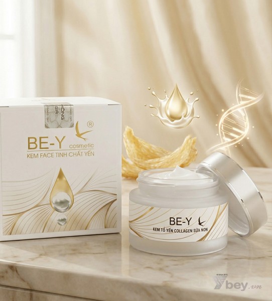 Sản phẩm Kem yến collagen sữa non dưỡng trắng da BE-Y (Giá bán: 280.000đ/ hũ 30g) có dạng kem sữa chua (Lotion), sóng sánh như thạch dễ thẩm thấu vào da, không gây nhờn rít, da mát lạnh dễ chịu. Sản phẩm có chiết xuất chính từ Tinh chất tổ yến tự nhiên 100% kết hợp cùng dưỡng chất Betaine từ Sữa non, Glycerin, Niacinamide, AHA trái cây tự nhiên, các loại thảo dược, thảo mộc và hoạt chất đặc biệt: Water, Arbutin (Bearberry), Sorbitan Oiivate, Cetearyl Oliv Ate, Glyceryl Stearate, Cetearyl Alcohol, Vegeles Aha, Cetyl Palmitate, Vitamin E, Vitamin A, Vitamin C, Fragrance 1%, Methylparapen 0.3%, Sodium Benzoate 0.3%...giúp cải thiện tình trạng da rõ rệt sau mỗi lần sử dụng.