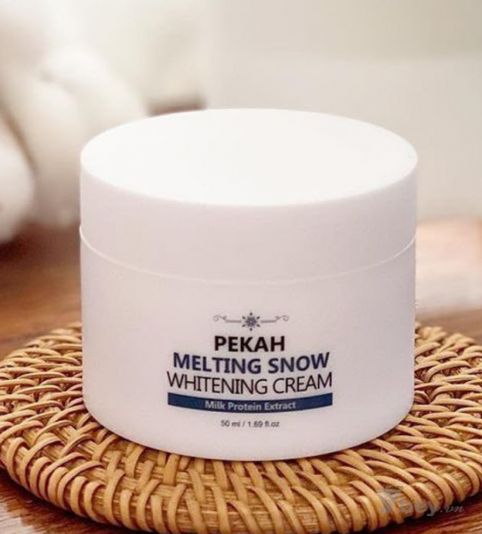 Kem Dưỡng Làm Sáng, Trắng Da, Nâng Tông Pekah Melting Snow Whitening Cream là kem dưỡng thuộc thương hiệu Pekah đến từ Hàn Quốc. Là sản phẩm được thiết kế để làm sáng và làm đều màu da, làm giảm sự xuất hiện của các đốm đen và cải thiện nếp nhăn. Loại kem này có phải kem trộn không? câu trả lời là không, sản phẩm không sử dụng các chất gây hại cho da như cồn, paraben và chất tẩy da.