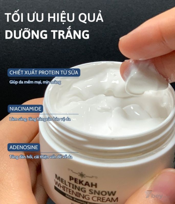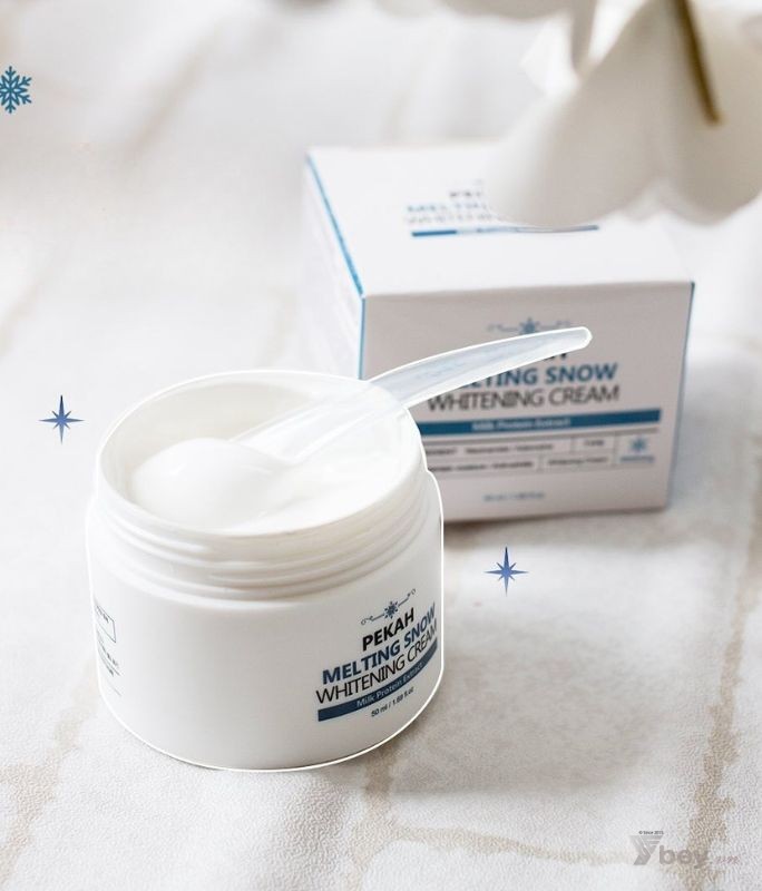- Cải thiện kết cấu da: Sử dụng thường xuyên kem dưỡng trắng da Pekah Melting Snow Whitening Cream có thể giúp da mịn màng và mềm mại hơn vì nó giúp cải thiện kết cấu da tổng thể bằng cách thúc đẩy quá trình thay mới tế bào và cấp ẩm.